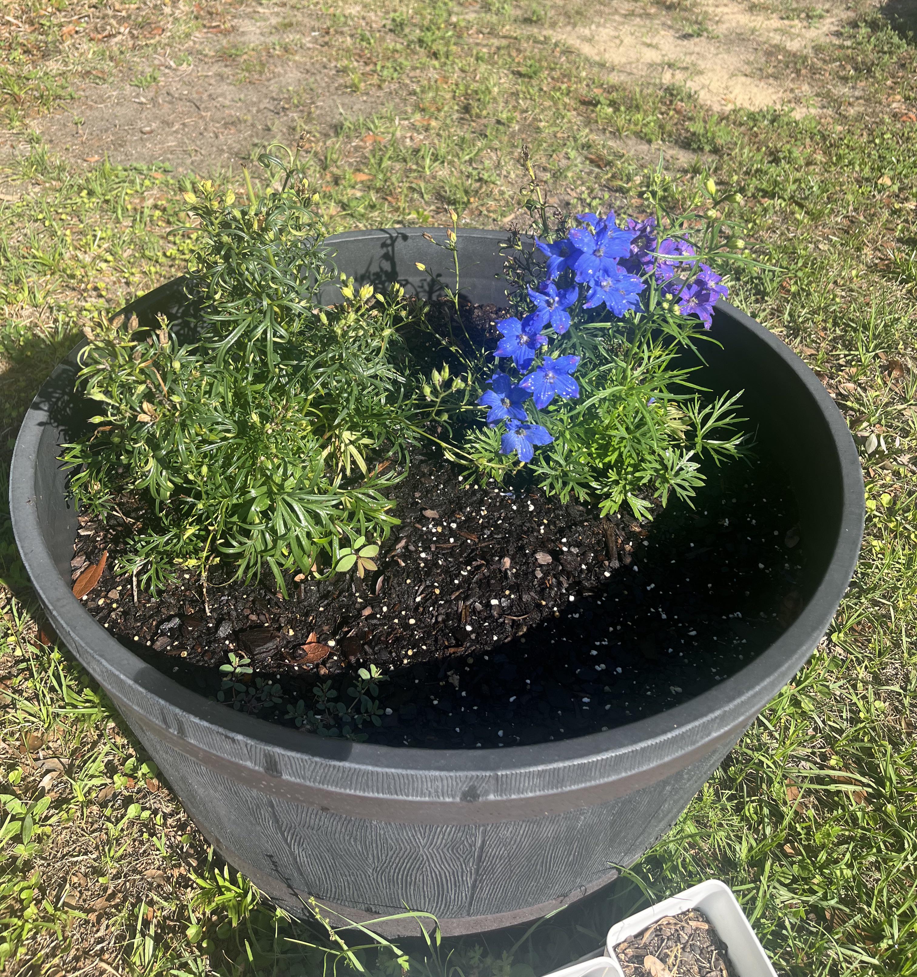 Lebt in der Nähe von Pensacola, Florida. Rittersporn Anfang März in Blumenerde gepflanzt. Sie haben von etwa 7 bis 16 Uhr volle Sonne. Ich gieße sie jeden Tag, normalerweise zwischen 14 und 15 Uhr, wenn ich nach Hause komme. Die blühende Pflanze befindet sich auf der Nordostseite des Topfes, die nicht blühende Pflanze befindet sich im Südwesten. Die Pflanze, die nicht blüht, hat Knospen, aber sie scheinen ständig auszutrocknen, während sich die andere Pflanze öffnet. Irgendwelche Ratschläge?