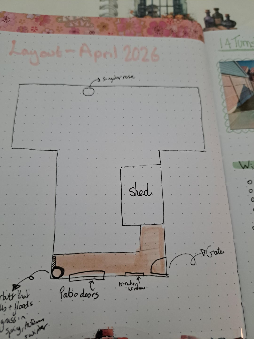 Ich komme überhaupt nicht mit der Form klar. Ich weiß, dass wir den Schuppen nach rechts hinten verlegen und um die Ecke verstauen wollen (dort ist es größtenteils schattig) und eine Art Weg hinzufügen wollen, um dorthin zurückzukommen. Der Pfad könnte eine gute Möglichkeit sein, einige Kurven einzuführen. Unter dem Schuppen befindet sich derzeit ein Betonsockel, sodass wir möglicherweise einige Pflastersteine darauf legen und unseren derzeitigen Pflasterstein im Vergleich zur aktuellen Position weiter nach vorne ausdehnen, da dadurch mehr Sitzplätze zur Verfügung stehen.