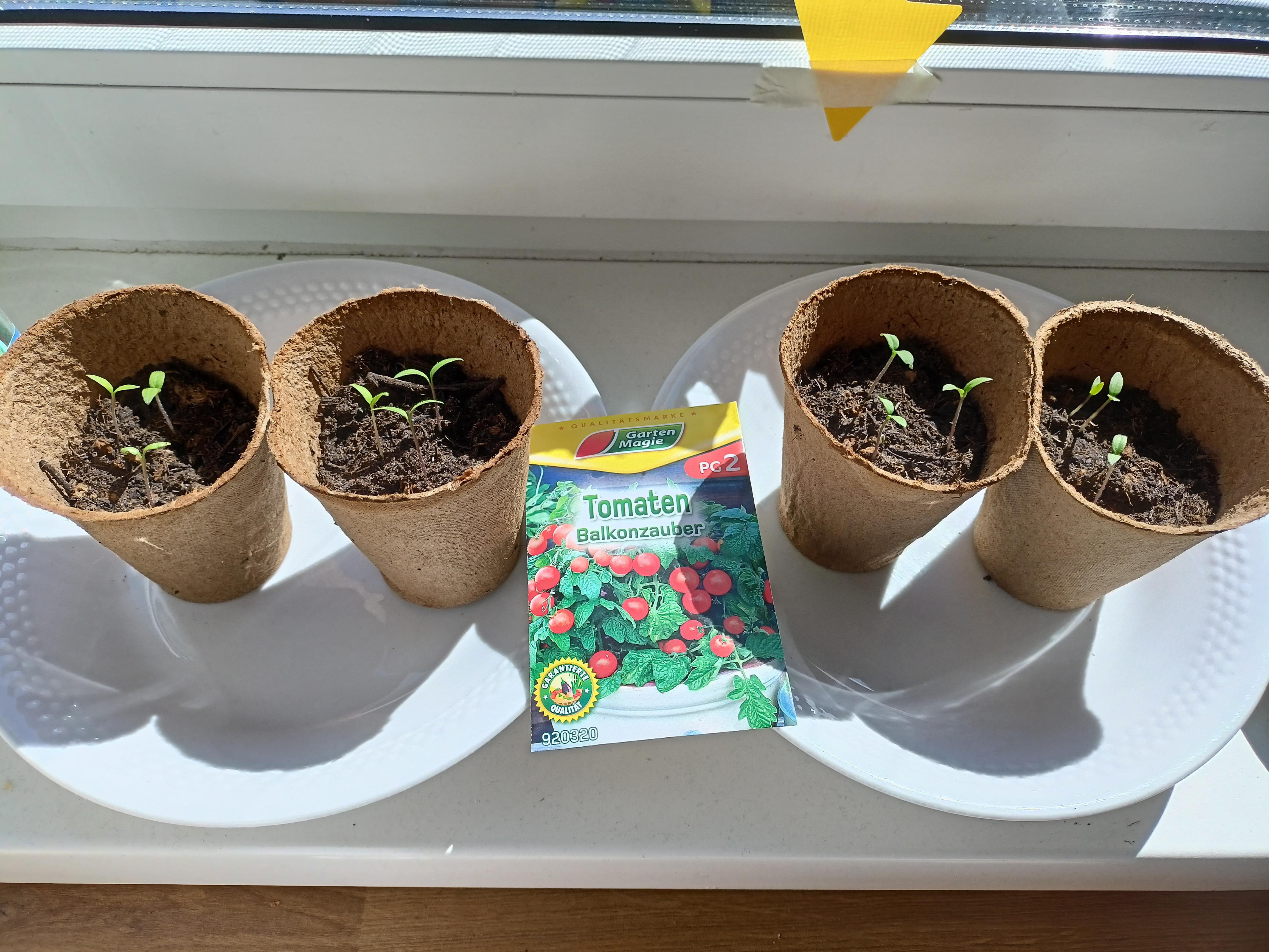 Ich züchte mir gerade Tomaten für meinen Balkon an. Dafür habe ich jeweils ein paar Samen in ein Anzuchttopf getan und jetzt auch tatsächlich mehrere kleine Pflanzen gewachsen.