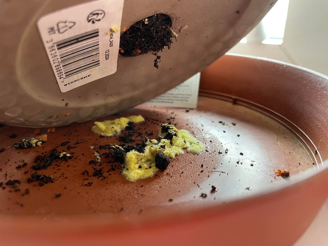 Ich habe diesen gelben Schimmel gefunden, der unter einem Blumentopf mit Kakteen wächst. Kann es jemand identifizieren und herausfinden, ob ich die Kakteen loswerden muss? Ich habe kleine Kinder herumlaufen lassen und weiß, dass einige Schimmelpilze nützlich sein können, während andere für den Menschen giftig sein können