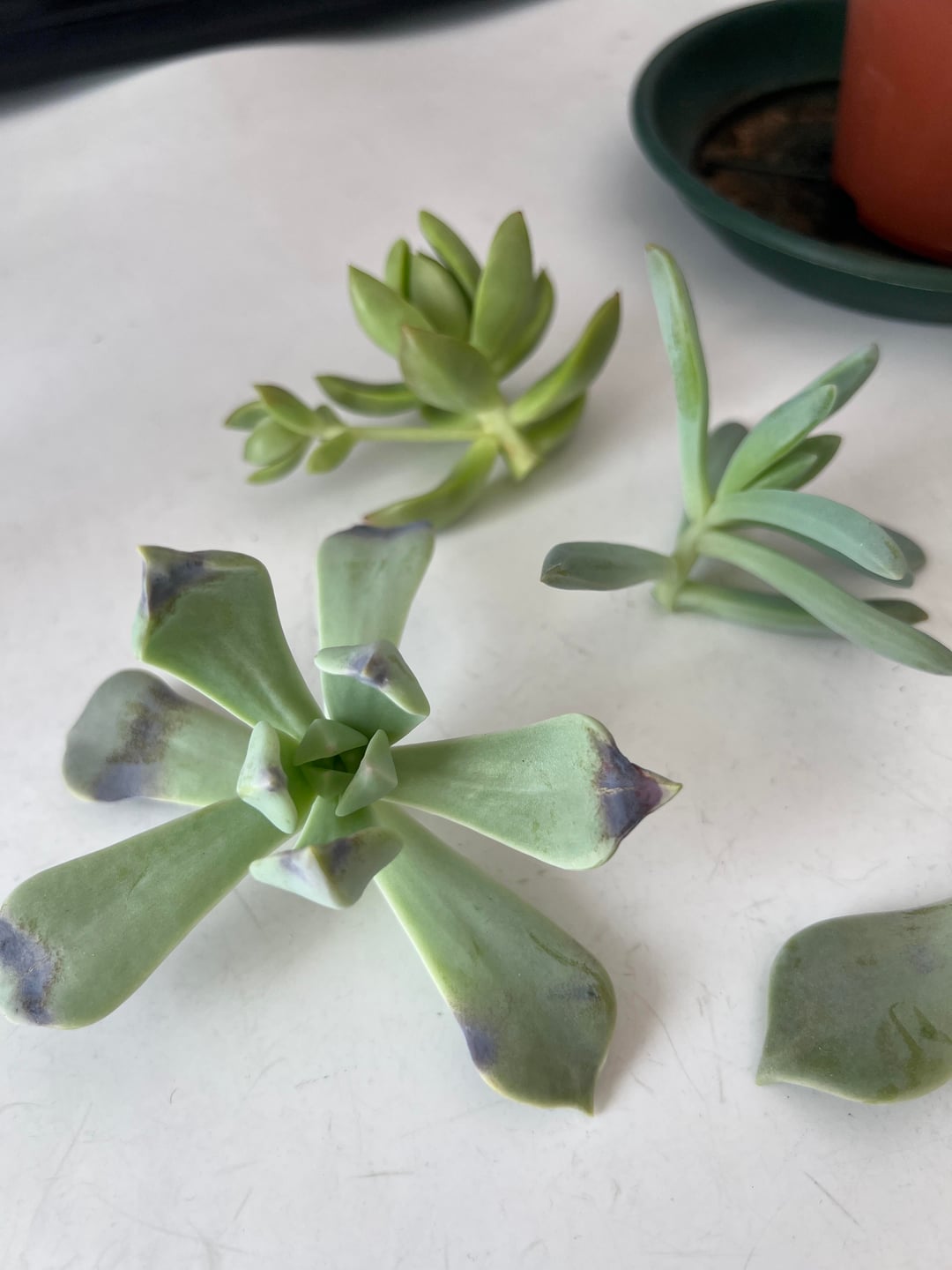 Ich habe diese Babys versuchsweise ins Haus gebracht, aber es wurde viel zu wenig Sonne und ich streckte mich super aus. Ich habe sie geköpft und werde sie jetzt wieder draußen in die volle Sonne stellen, um zu sehen, ob sie an der Stelle, an der ich sie geschnitten habe, neues Wachstum hervorbringen.