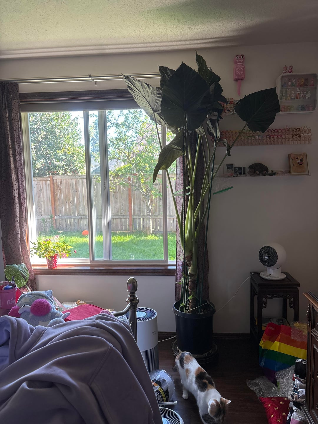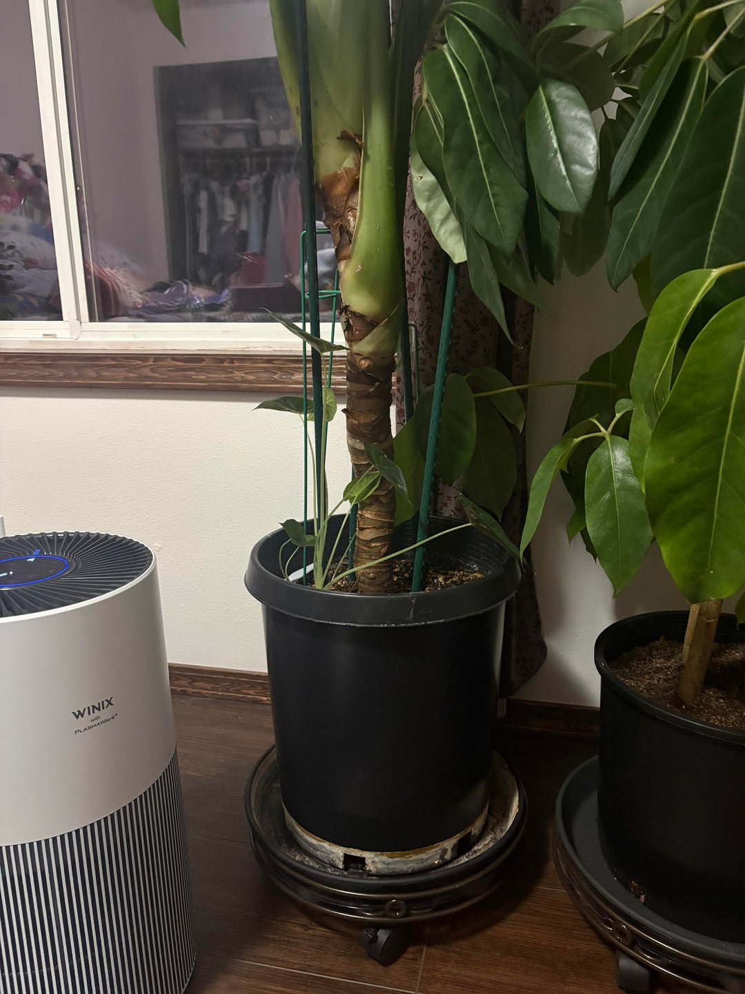 Ich habe eine 7 Jahre alte Alocasia, die sehr groß ist. Es ist etwa 7 Fuß hoch. Ich habe das Gefühl, dass der Kern davon eine tickende Zeitbombe ist, und ich weiß nicht, was ich tun soll. Vielleicht ist diese Pflanze aus meinem Platz herausgewachsen, aber ich bin mir nicht sicher, was ich mit dieser Information anfangen soll. Muss ich mir Sorgen um den Kofferraum machen? Soll ich die ursprüngliche Pflanze verkaufen und die beiden Babys, die sie hat, behalten?