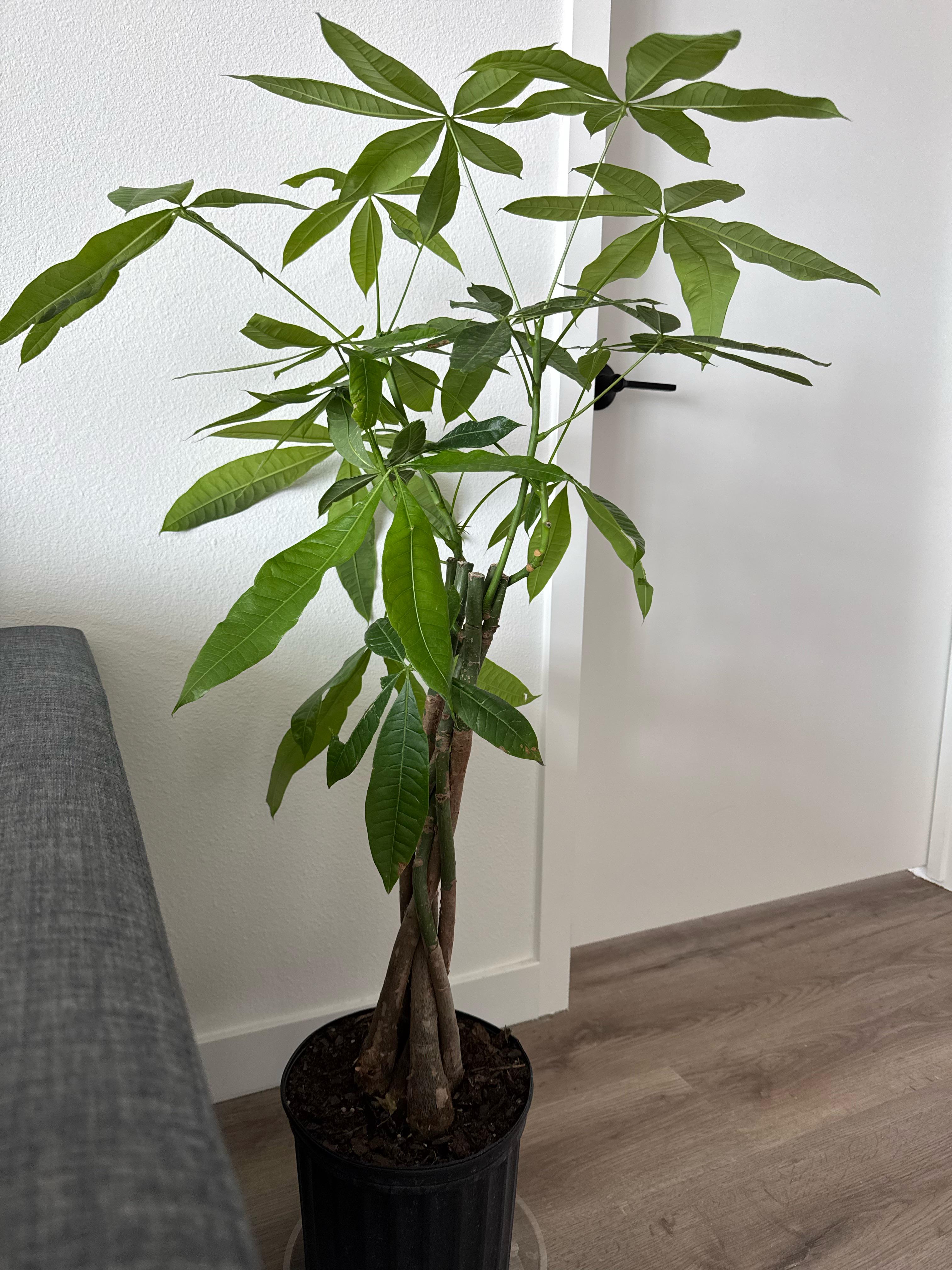 Ich habe diesen Geldbaum erst gestern bekommen. Ich habe den Metallbinder oben abgenommen, als ich gelesen habe, dass er der Pflanze schaden kann. Wie halte ich die Zöpfe am Laufen? Es sieht auch so aus, als ob es sich neigt, und ich frage mich, wie ich es gerade richten kann. Es ist etwa 10 Fuß von großen Fenstern entfernt und hat fast den ganzen Tag indirektes Sonnenlicht. Der Boden ist feucht, daher warte ich mit dem Gießen, bis er sich 2,5 bis 5 cm trocken anfühlt. Tipps willkommen, ich bin ein neuer Anlagenbesitzer, bitte seien Sie nett 🙂