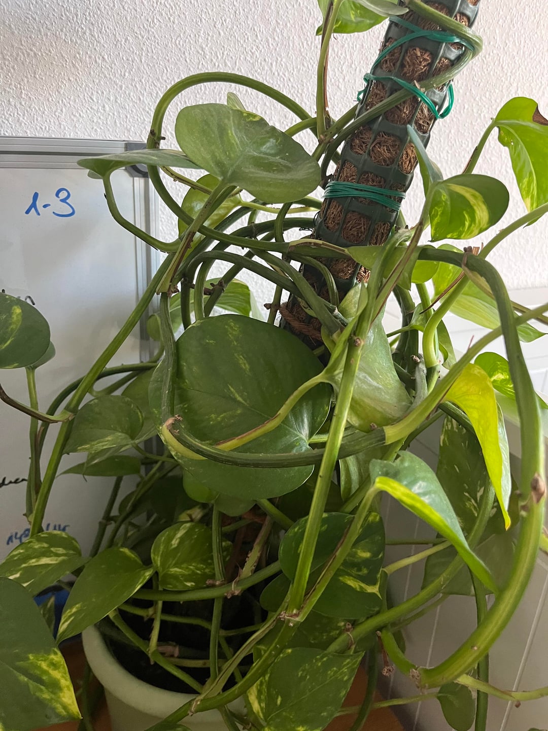 Stand mal direkt am Fensterbrett auf der Südseite, hat gelbe Blätter bekommen und dann habe ich die wie die Monstera auch, am anderen Ende des Raumes gestellt. Sie sieht besser aus.