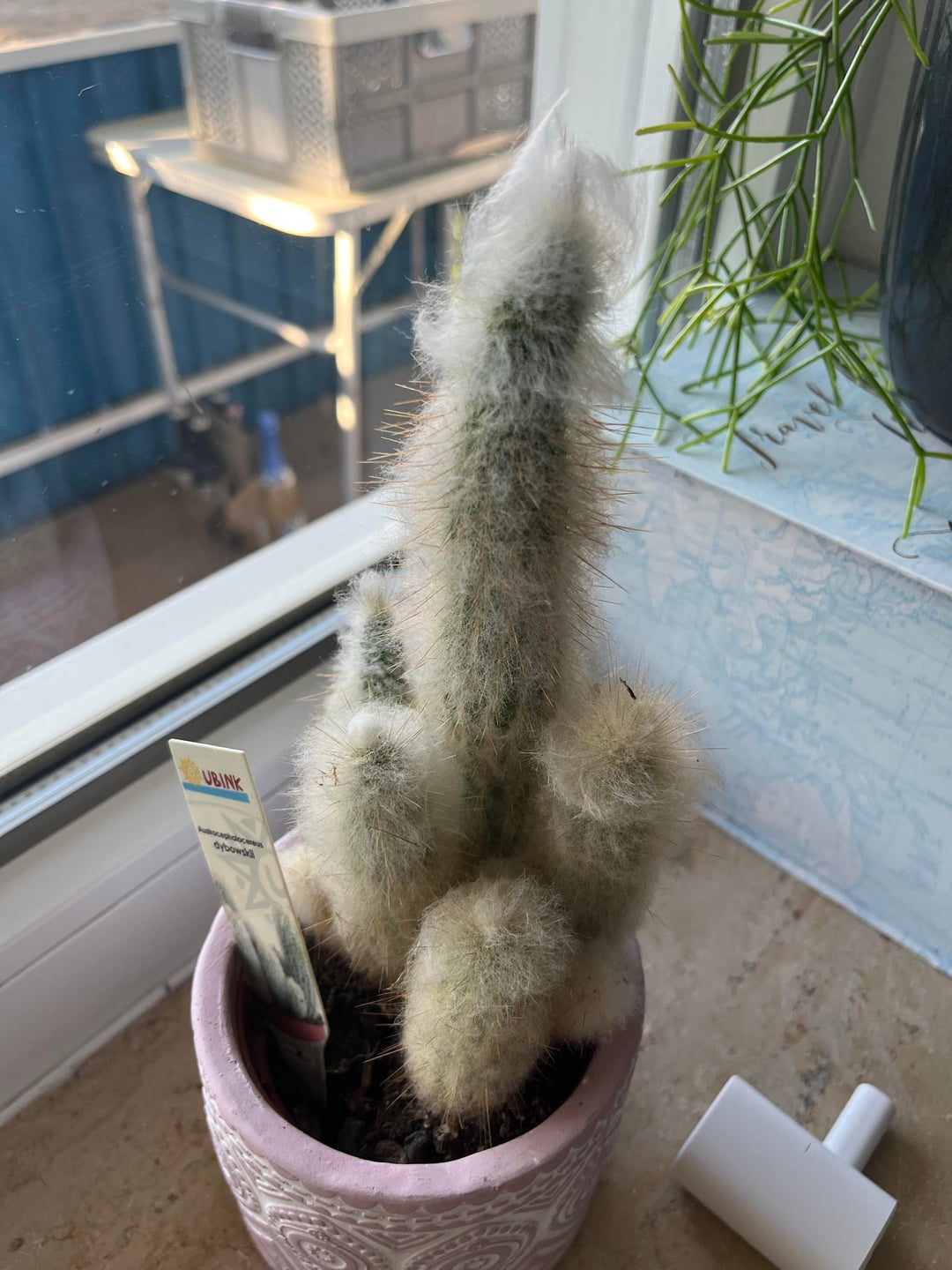 Steht auf dem Fensterbrett der Südseite. Der wächst fröhlich vor sich hin. Allerdings hat der viele neue Ableger. Ich wollte den umtopfen aber habe mich sehr an ihn gestochen…
