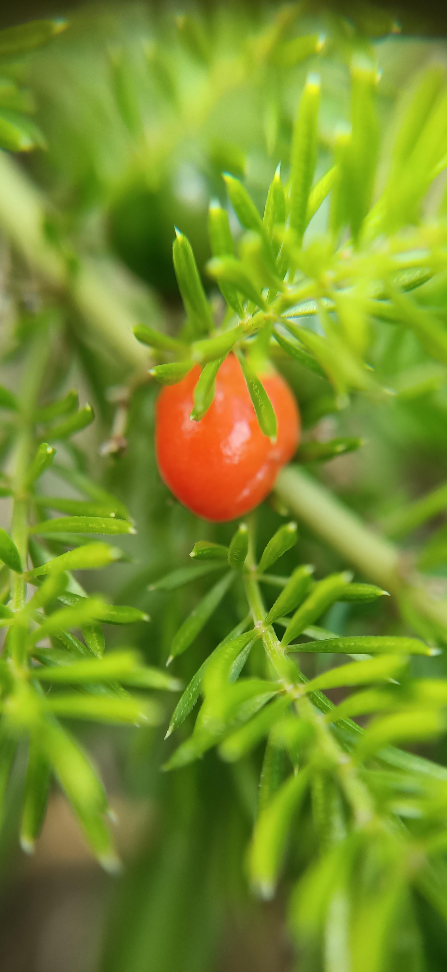 Facebook Twitter LinkedIn Pinterest Bluesky Threads Spargelfarn mit prallen roten Früchten. Von: heavywater22