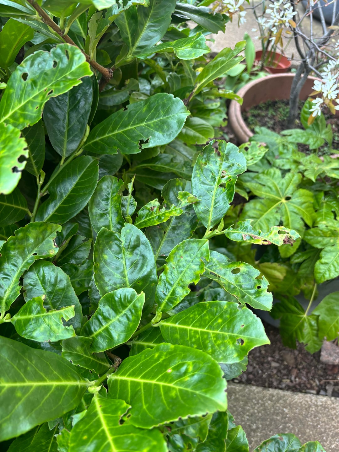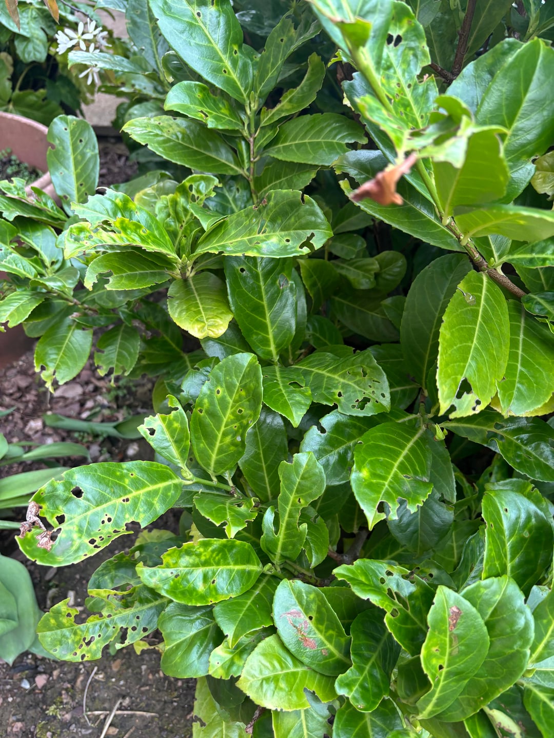 Es gibt Dickmaulrüssler, die wir nicht loswerden können (wir haben Hunderte Pfund Nematoden ausgegeben) und ich glaube, dass es noch andere Krankheiten gibt, da die Löcher auch in der Mitte sind 😢 Wir glauben, dass der ganze Garten der Straße Dickmaulrüssler hat. Wir fragten uns, ob es daran lag, dass es sich um eine Stadtentwicklung handelte, in der es nur wenige andere Wildtiere gab, die dem Rüsselkäfer nachjagen könnten.
