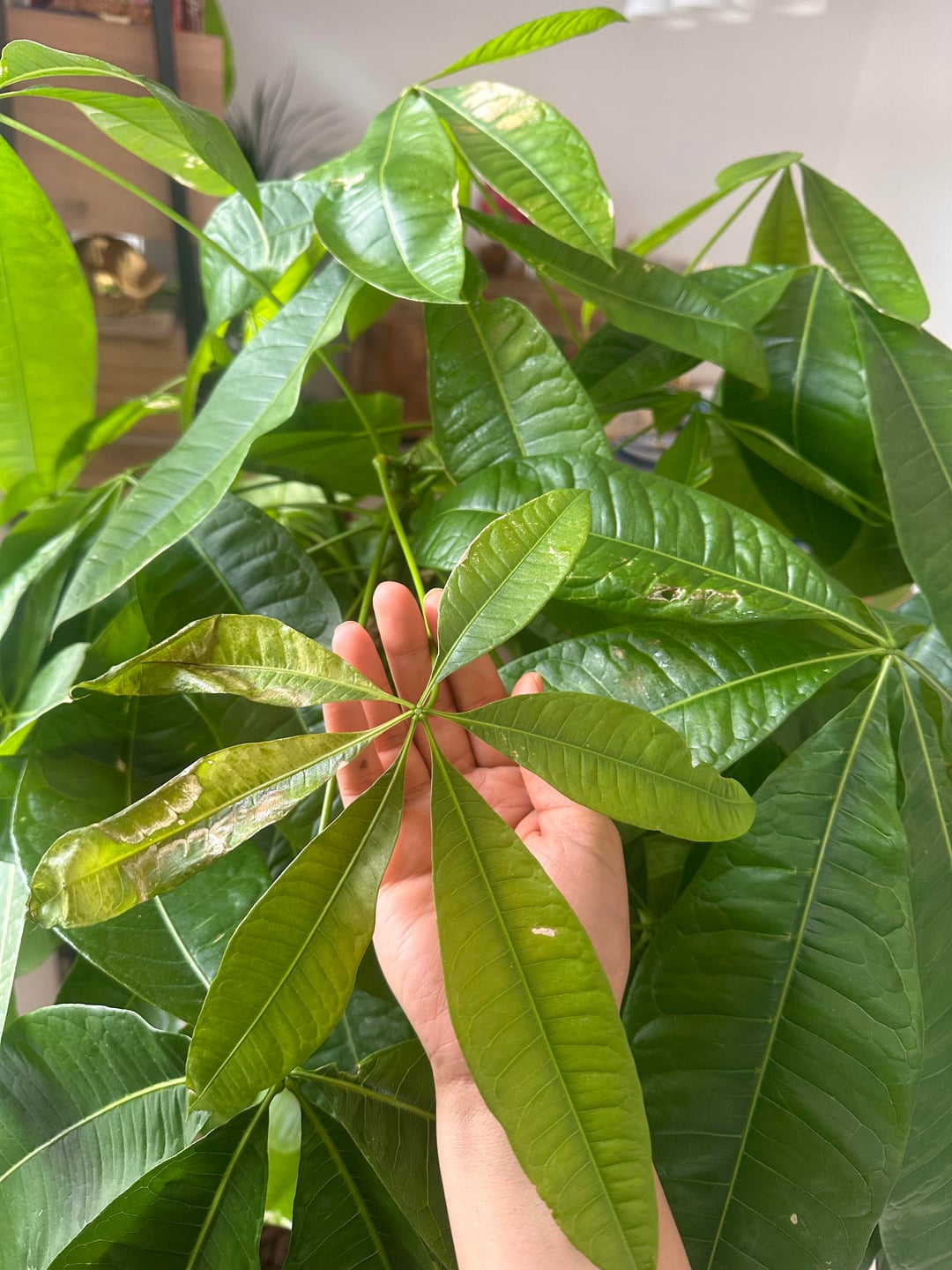 Ich habe den Geldbaum vor einer Woche gekauft und seine Blätter werden gelb und sind halb aufgefressen