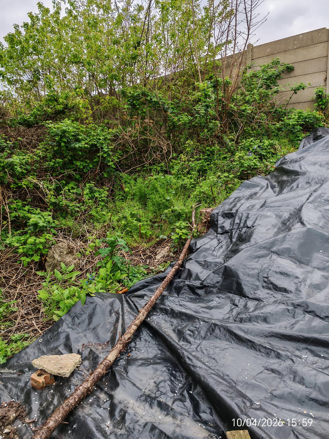 Nachdem ich einige Bäume entfernt hatte, wusste ich nicht, wie schnell sie überwachsen würden. Ich habe einiges abgeräumt und eine Plane angebracht, um ein Nachwachsen zu verhindern. Der Rest wächst schnell und selbst wenn ich Ideen habe, was ich damit machen kann, ist das möglichst günstig und leicht zu warten. Das Gebiet liegt hinter der Zaunlinie, von der ich erst vor etwas mehr als einem Jahr wusste, dass sie mir gehört.