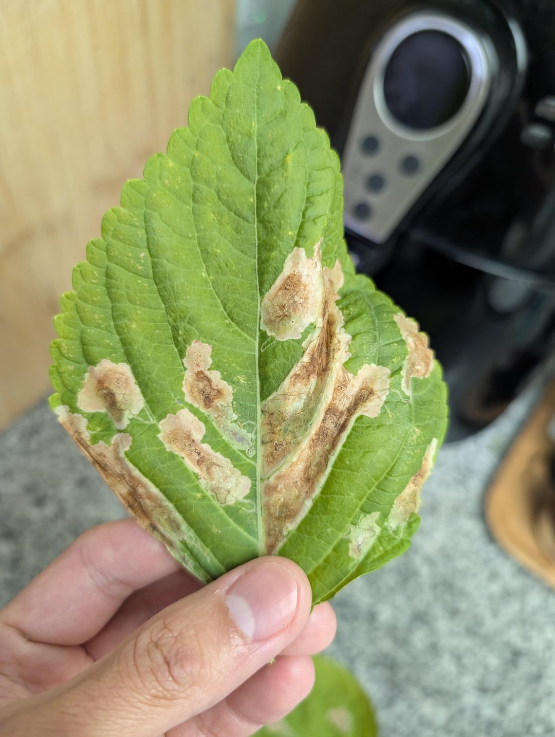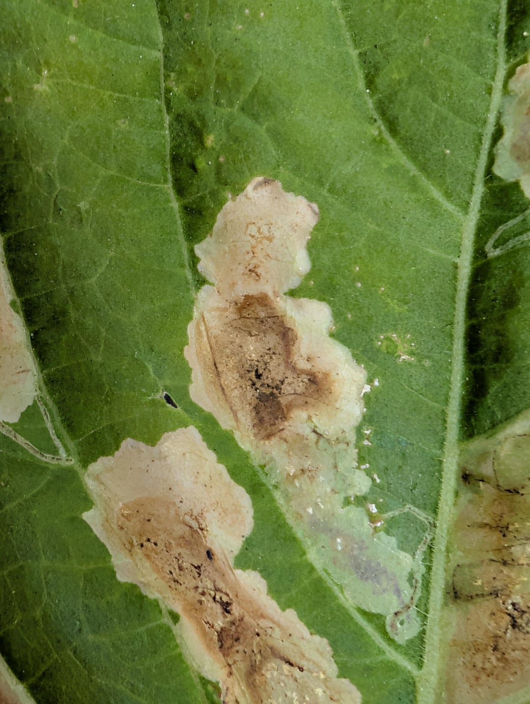 Gemini AI sagt, es seien Miniermotten? Die Flecken sind nicht auf jedem Blatt, sondern meist nur auf den reifen Blättern. Es ist erwähnenswert, dass keine meiner anderen Pflanzen es hat.