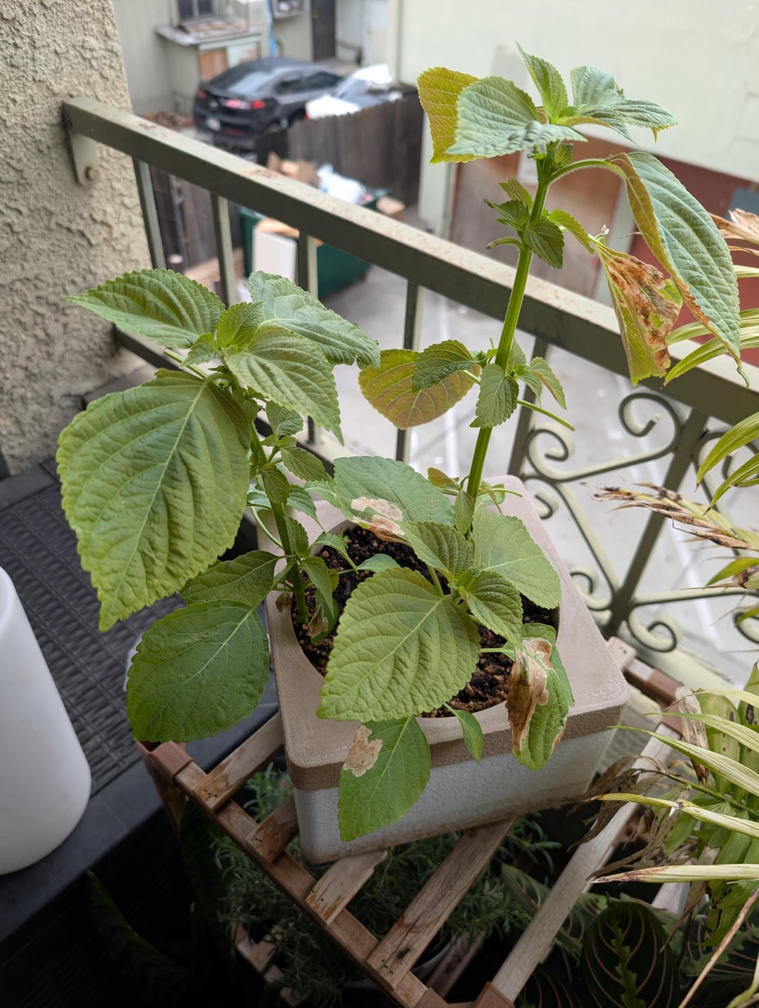 Die Pflanze steht vollständig im Freien, mit viel Sonnenlicht den ganzen Tag über (Westbalkon). Ich gieße nach Bedarf ein- bis zweimal pro Woche.