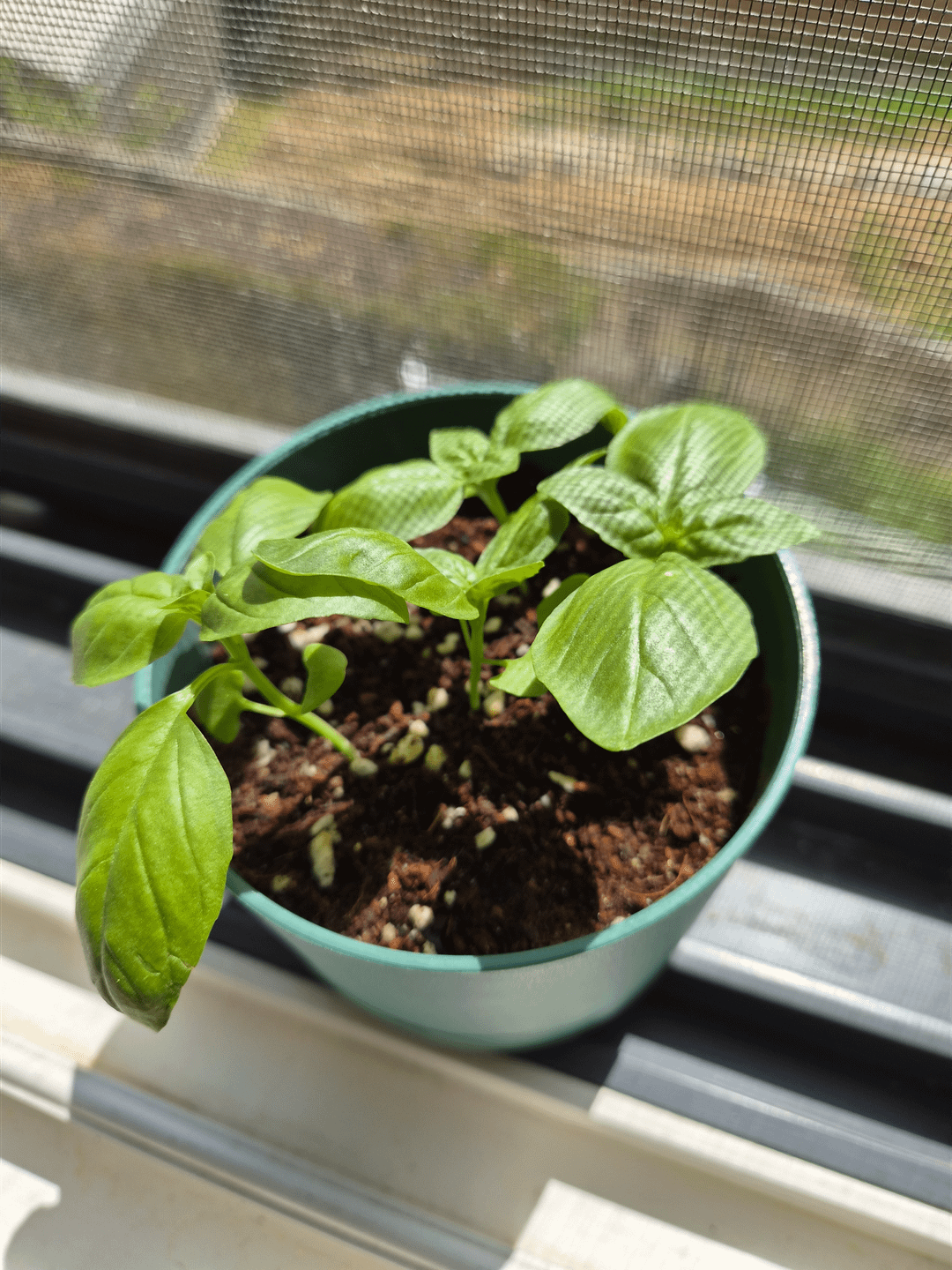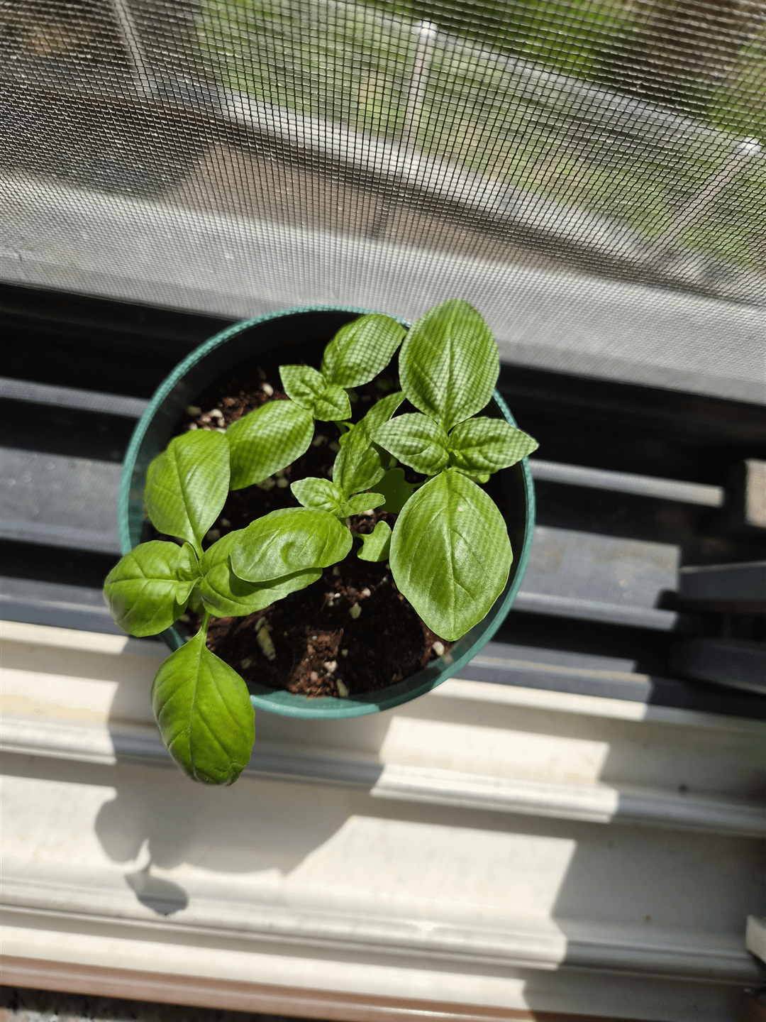 Ich habe vor 4 Wochen süßes Basilikum gepflanzt, aber ich mache mir Sorgen, weil der Topf etwas zu klein erscheint (Durchmesser beträgt 6 cm). Wenn man genau hinschaut, sieht es so aus, als würde das Basilikum in der Mitte nicht genug Sonnenlicht bekommen. Wäre es besser, es zu verpflanzen?