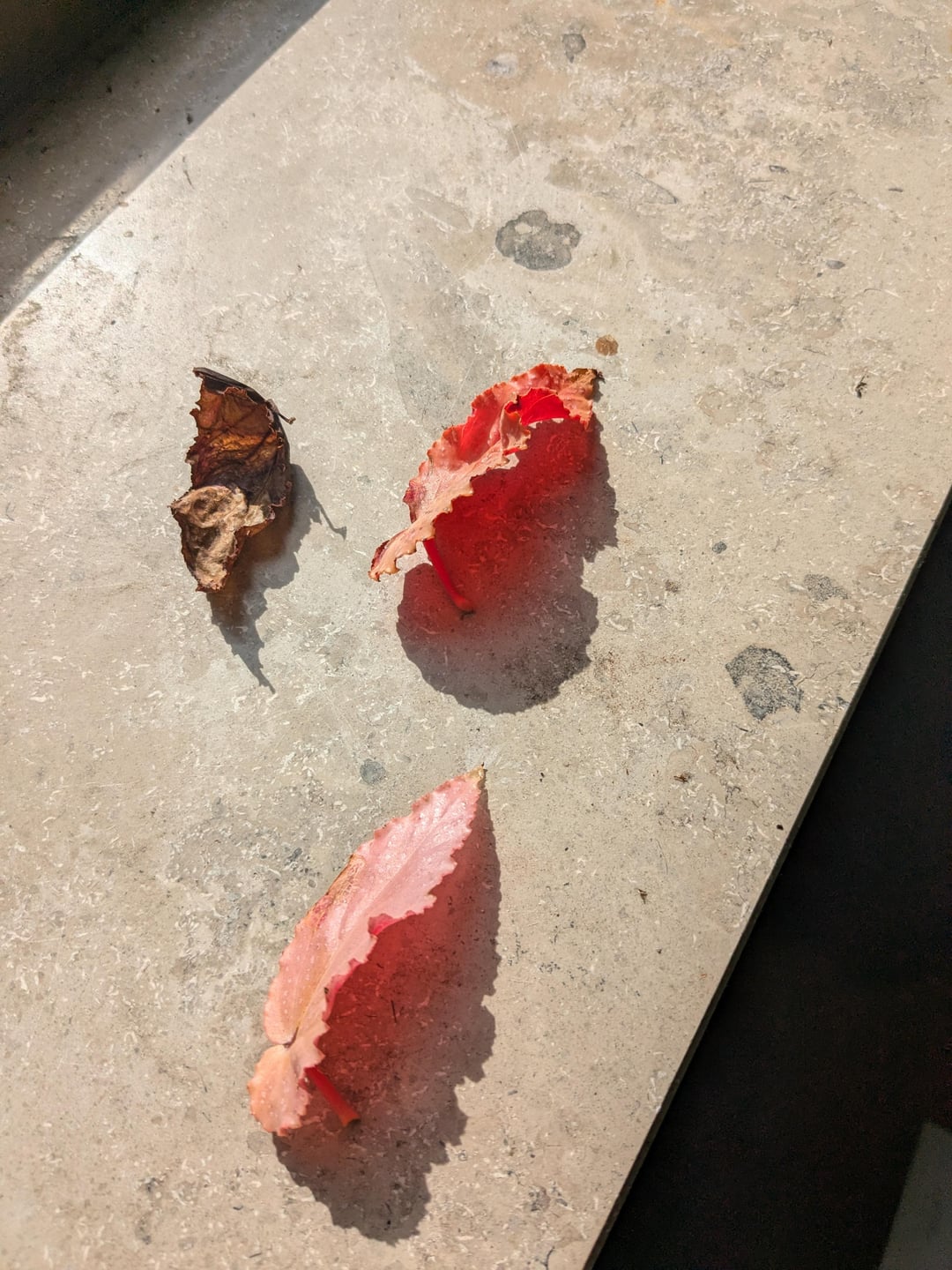 Dann letzen Herbst hat sie Angefangen langsam Blätter zu verlieren, wie in dem zweiten Bild – und im ersten Bild markiert – zu sehen.