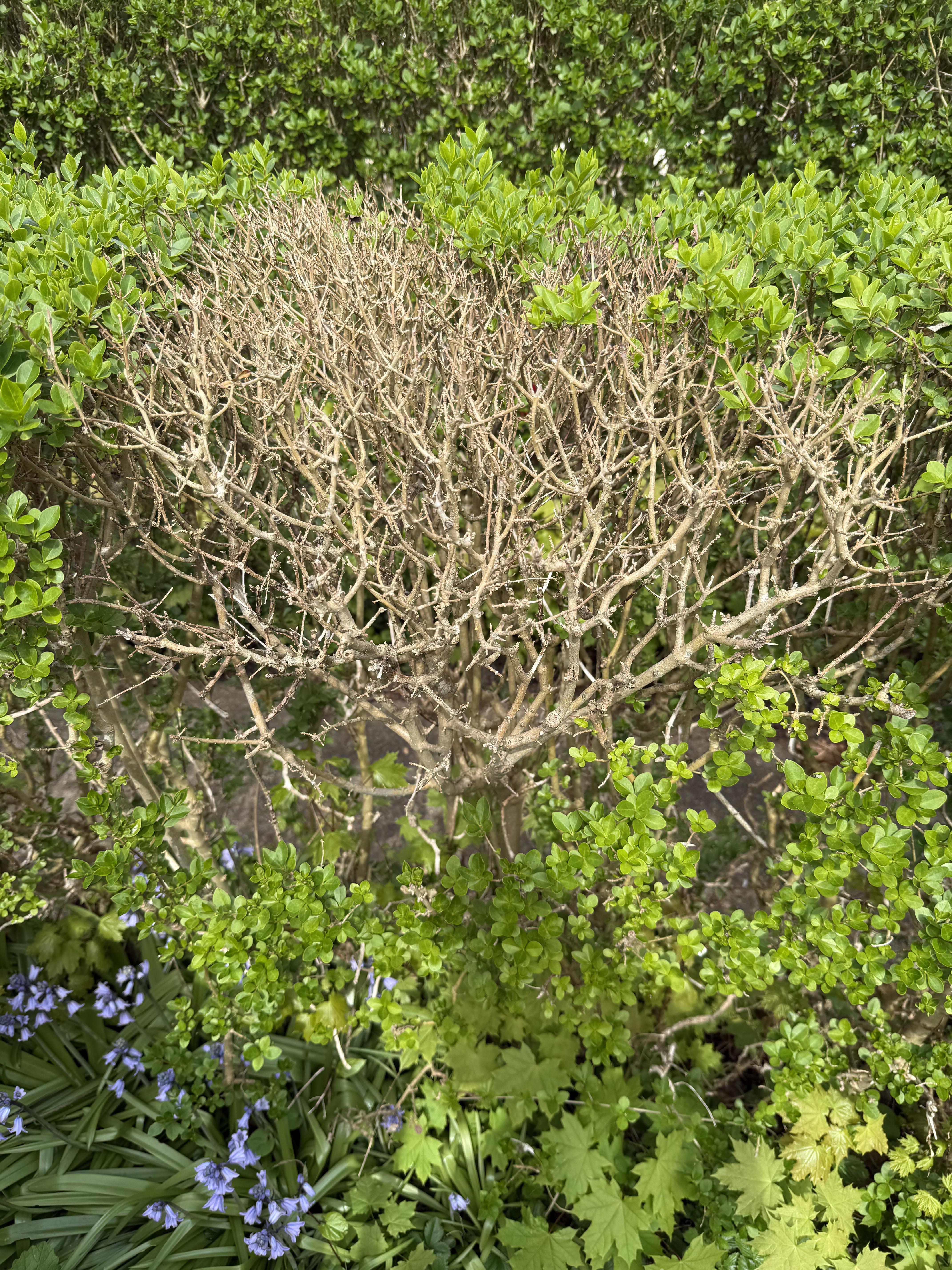 Der Rest der Hecke sieht gesund und grün aus, aber es gibt ein paar Stellen, die so aussehen. In der Vergangenheit war es überall durchgehend grün. Was passiert und wie kann ich ihm helfen, wieder zu wachsen? Von: McCretin