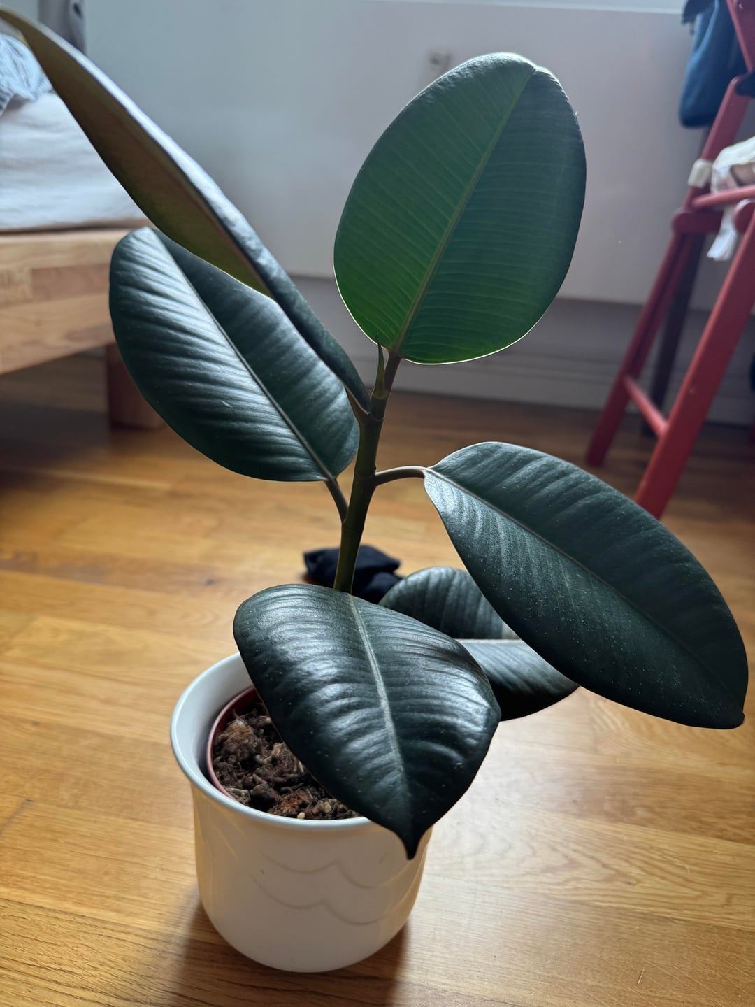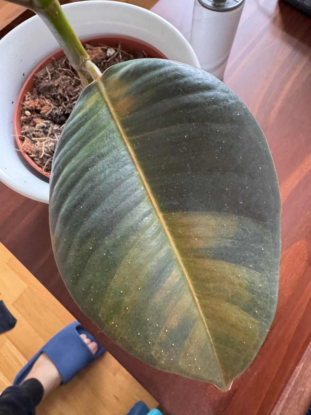 Seit letzter Woche hat mein Ficus die letzten 3 Blätter in Bodennähe verloren. Sie sahen in der Nähe des Stängels irgendwie faul aus und lösten sich sofort, als ich sie berührte, aber die Pflanze selbst sieht meiner Meinung nach gesund aus. Seit heute Morgen verfärbt sich das andere größere Blatt plötzlich gelblich und hängt herab. Das dritte Bild ist ein gesundes Blatt.