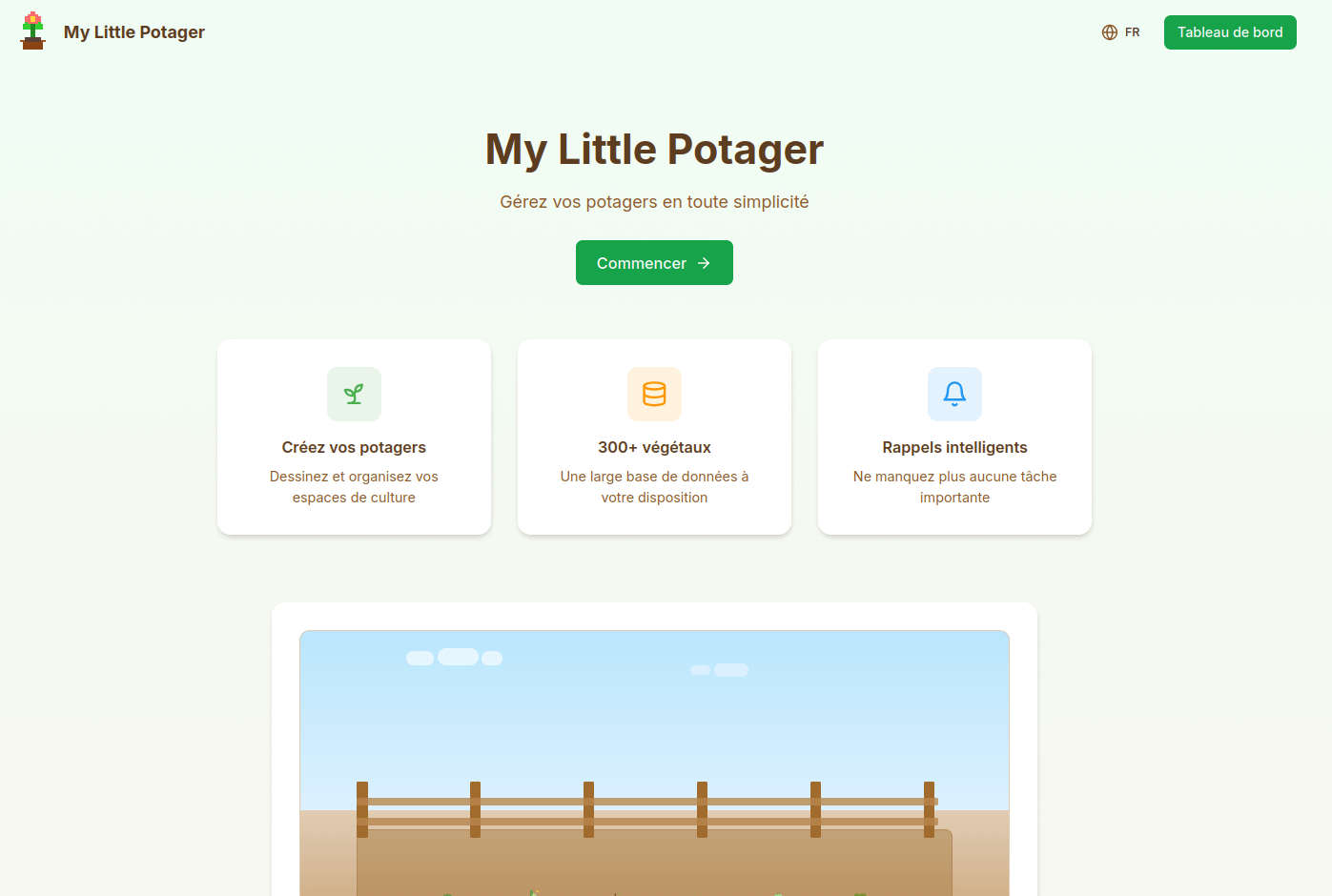 Von der Atmosphäre her ist es leicht gemütliche Pixelkunst, zweisprachig FR/EN, aber bewusst nicht "Kalte Produktivitäts-App". Die Idee ist, dass das Öffnen Spaß macht, auch wenn es regnet und man nicht in den Garten gehen kann.