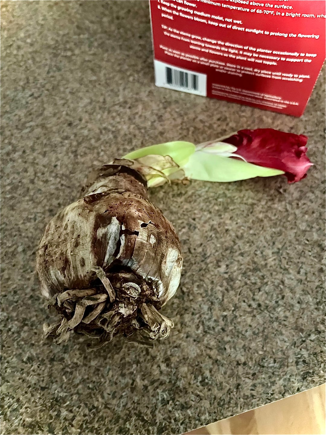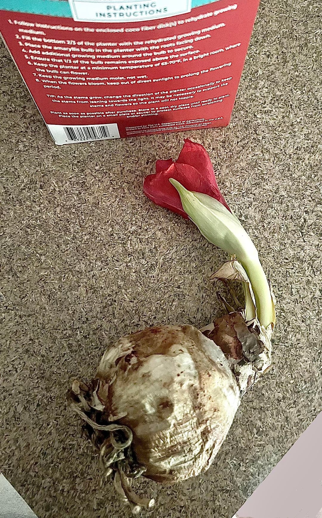 Also habe ich mir ein rotes Löwen-Amaryllis-Blumenzuchtset besorgt und so sieht die Zwiebel aus. Ich bin verwirrt, da in allem, was ich bisher gelesen habe, nicht erwähnt wird, was zu tun ist, wenn eine Blume daraus blüht –