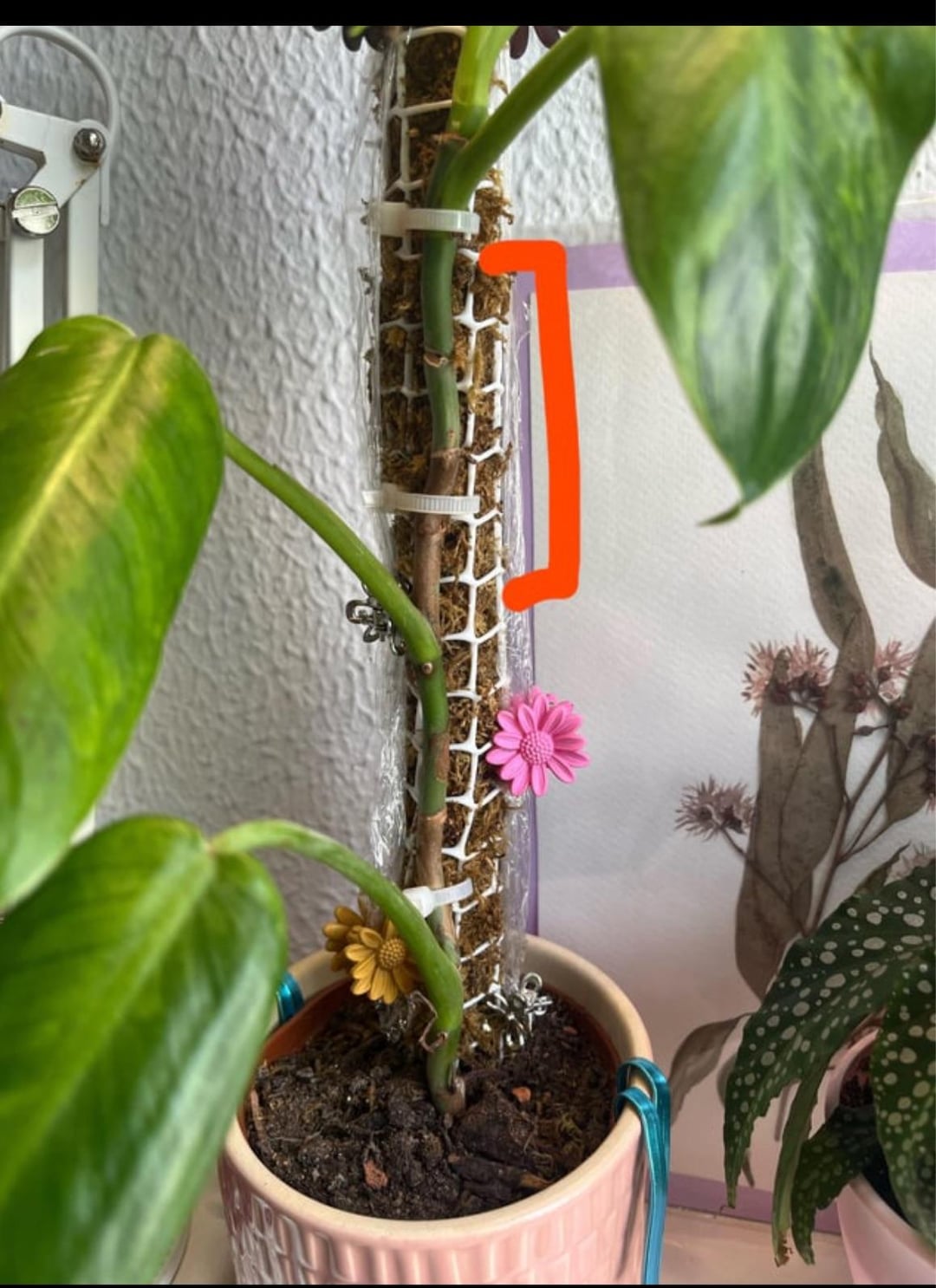 Ich habe diesen Philodendron Jose buono bekommen, der viel Platz zwischen den unteren und oberen Blättern hat.