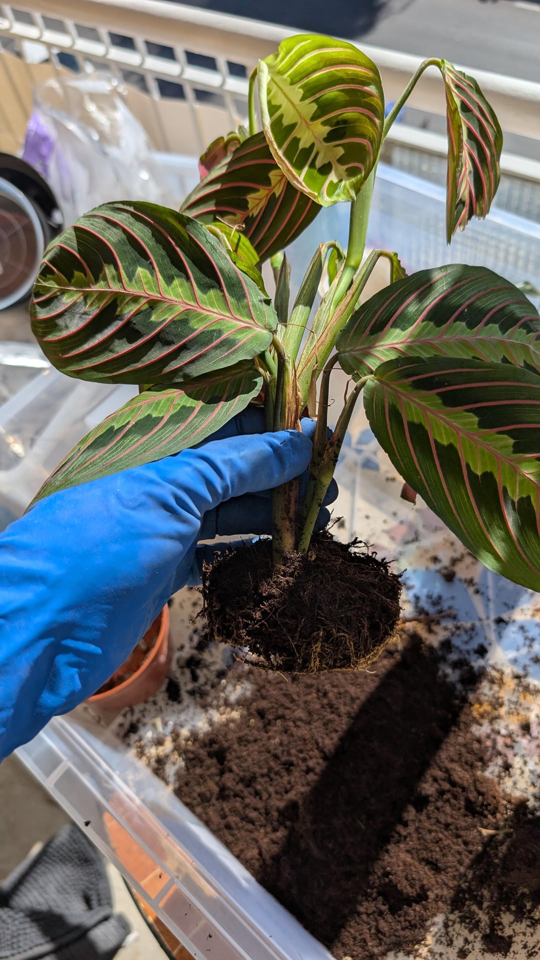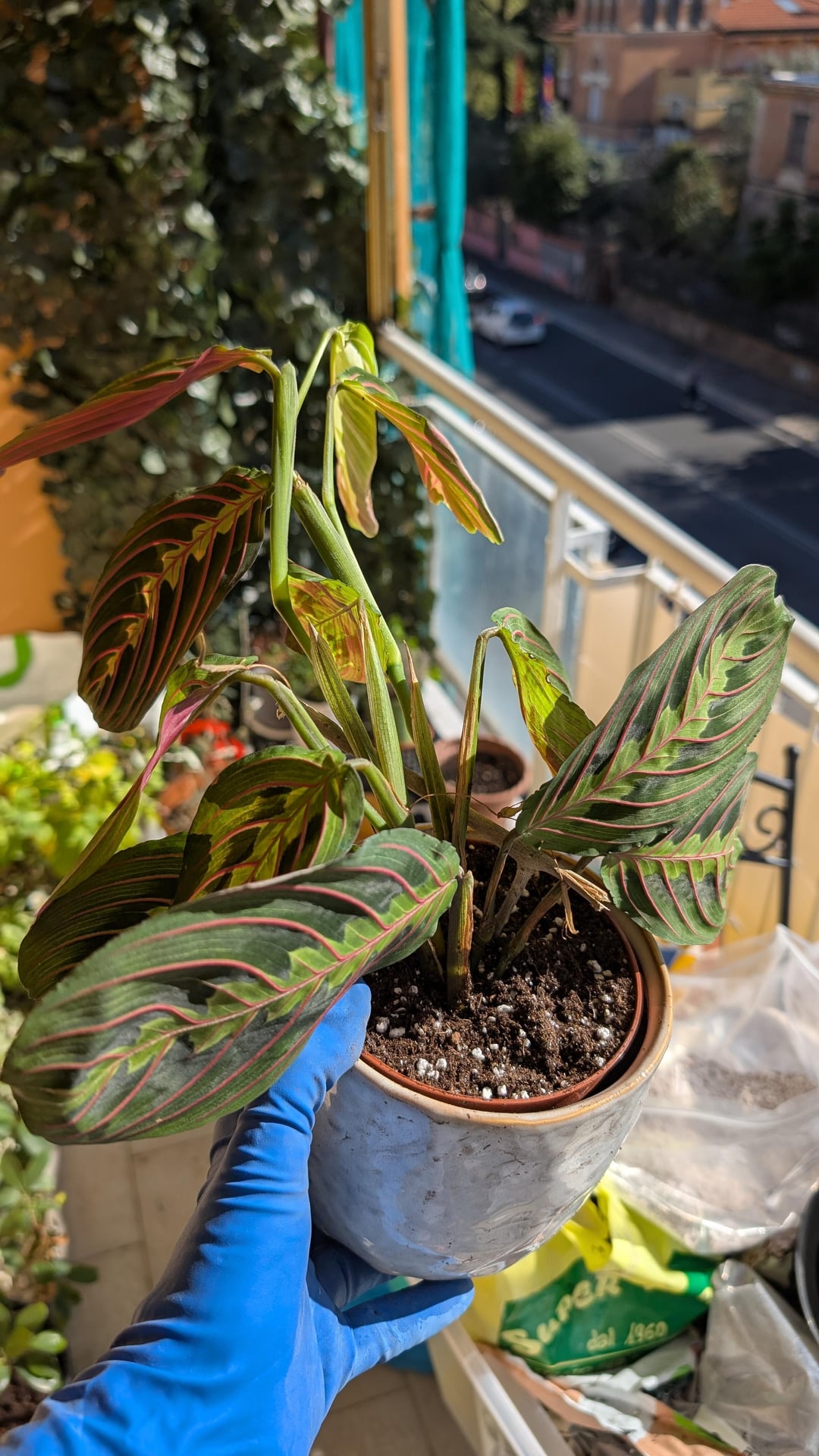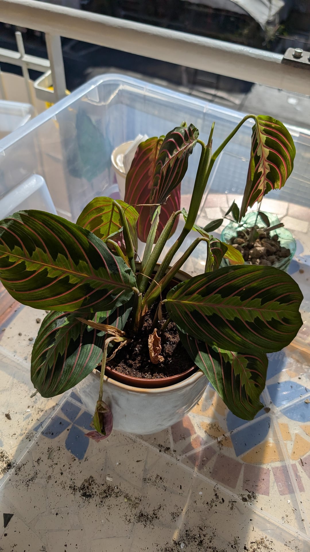 Nach zwei Monaten voller Blüte beginnt meine Marantha, Stresssignale zu geben. Abgestorbene und fast abgestorbene Blätter, matschiger Dreck. Ich hatte es noch nicht umgetopft und wahrscheinlich konnte die Erde nicht genug Wasser ableiten.