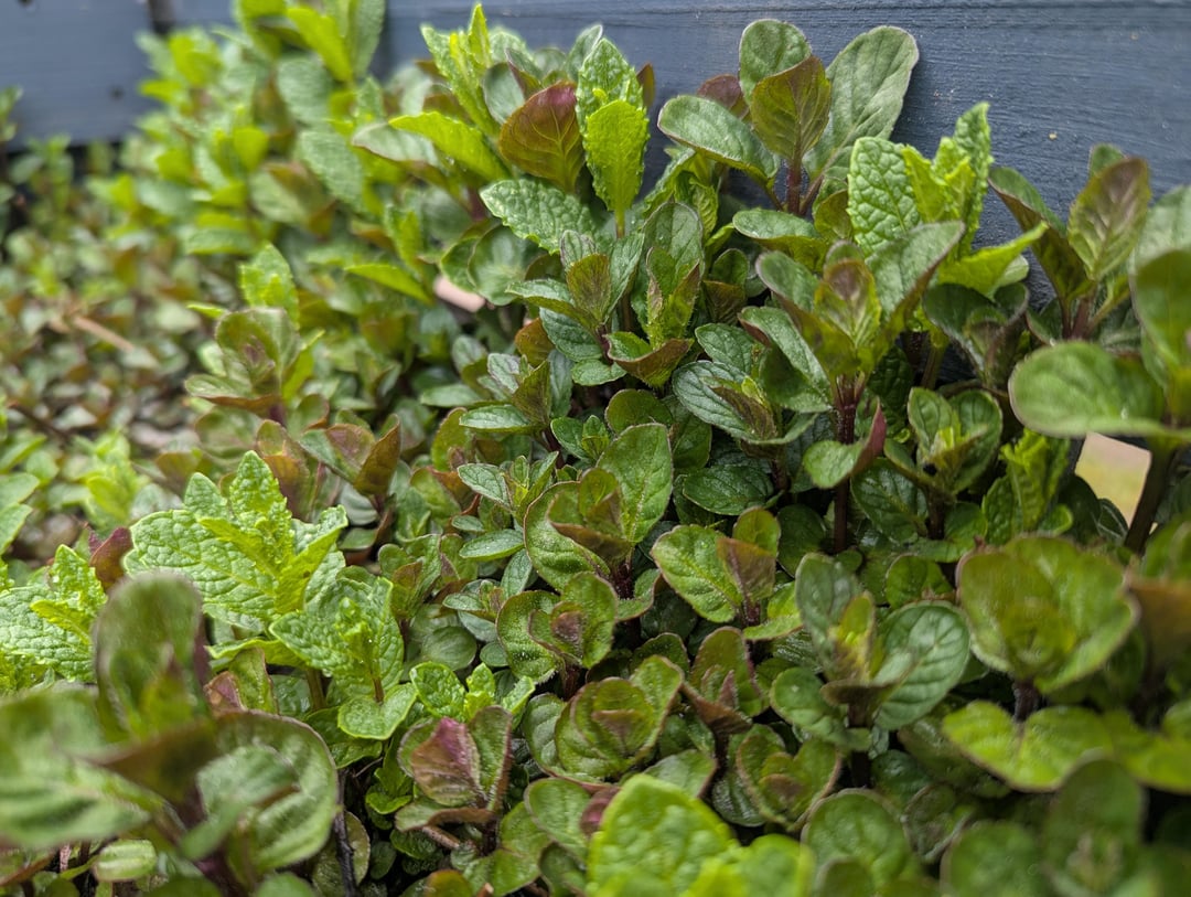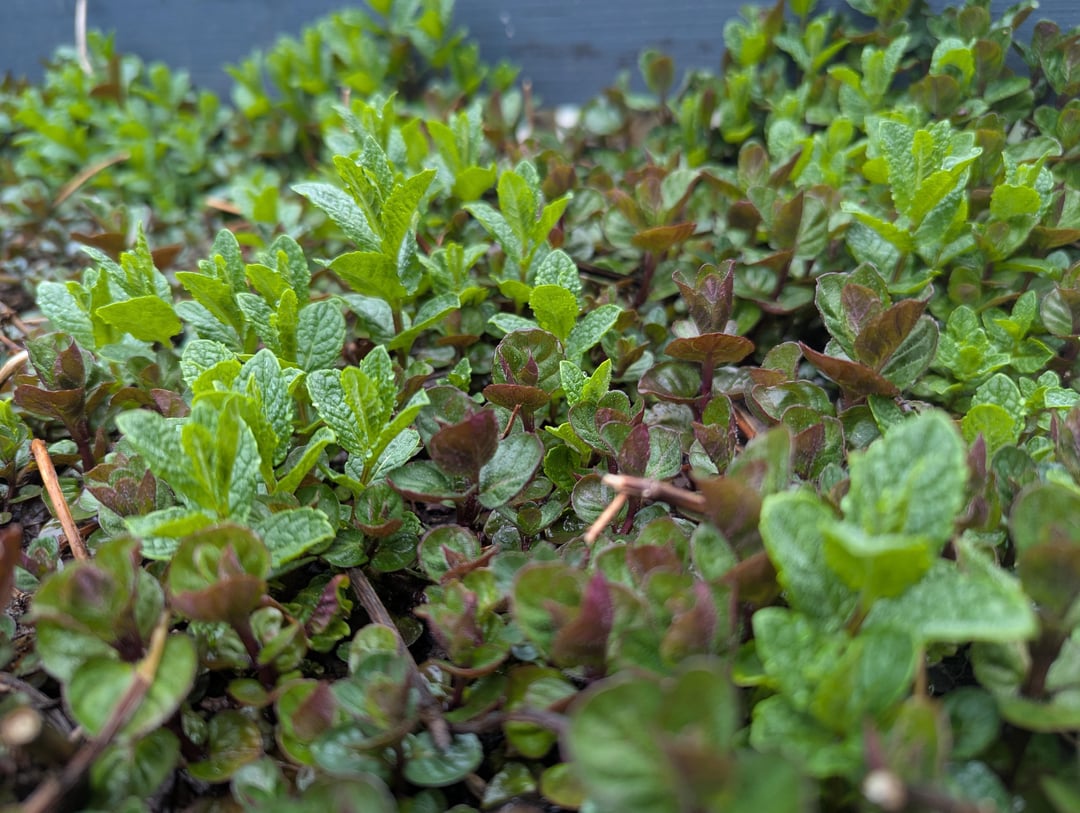 Grapefruit Minze in rötlichen Tönen (Verwendung im Salat), Apfelminze (Verwendung für Tee).