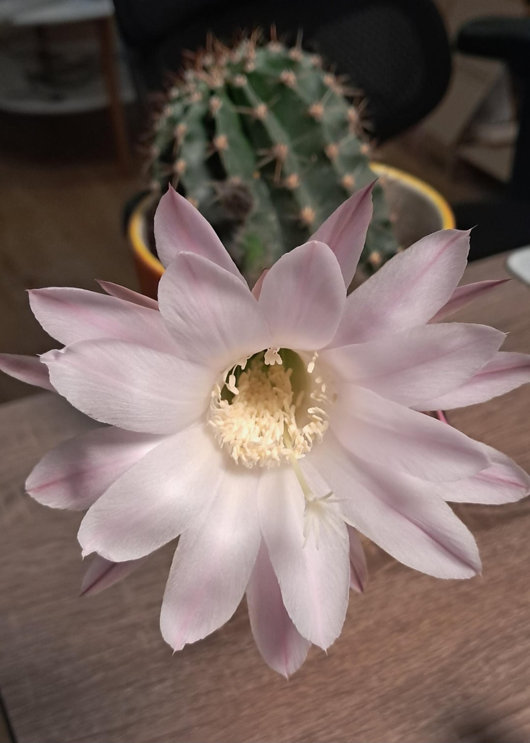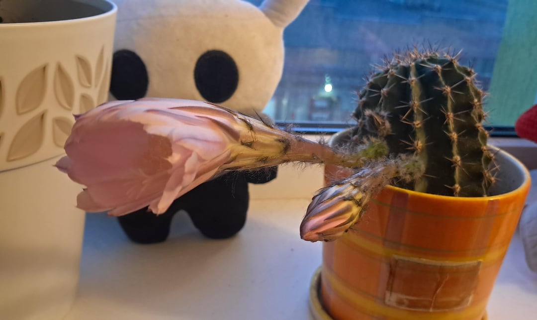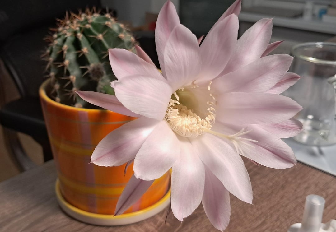 Ich weiß nicht, was für ein Kaktus das ist, aber ich habe nicht erwartet, dass die Blüten RIESIG sind. Und wunderschön.