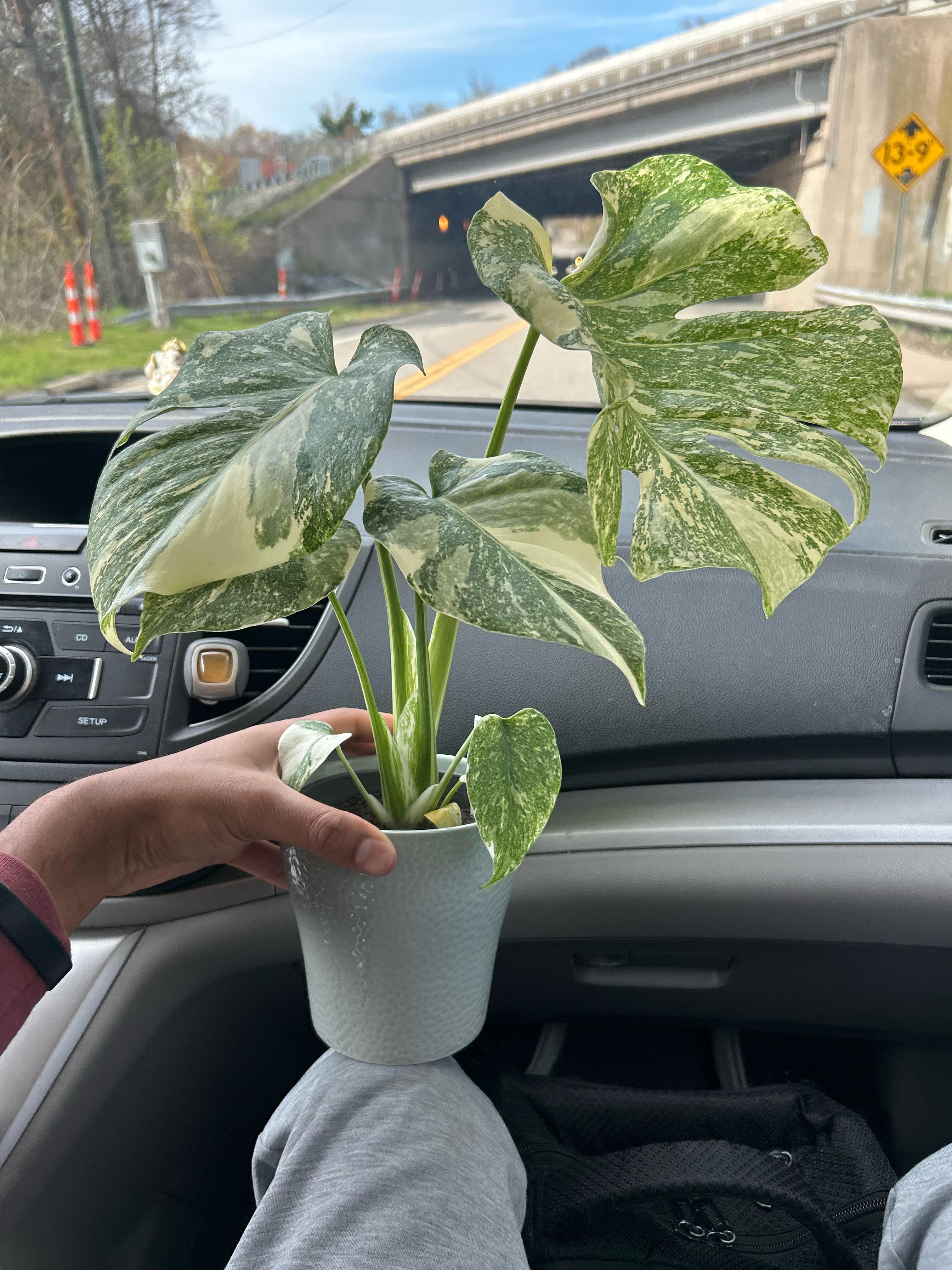 Ich habe das für 13 $ bei Trader Joe’s gefunden und auf dem Etikett stand nur „Monstera“, aber nicht angegeben, um welche Art es sich handelt, und auf dem Pflanzenetikett im Boden steht nur „Laub“.