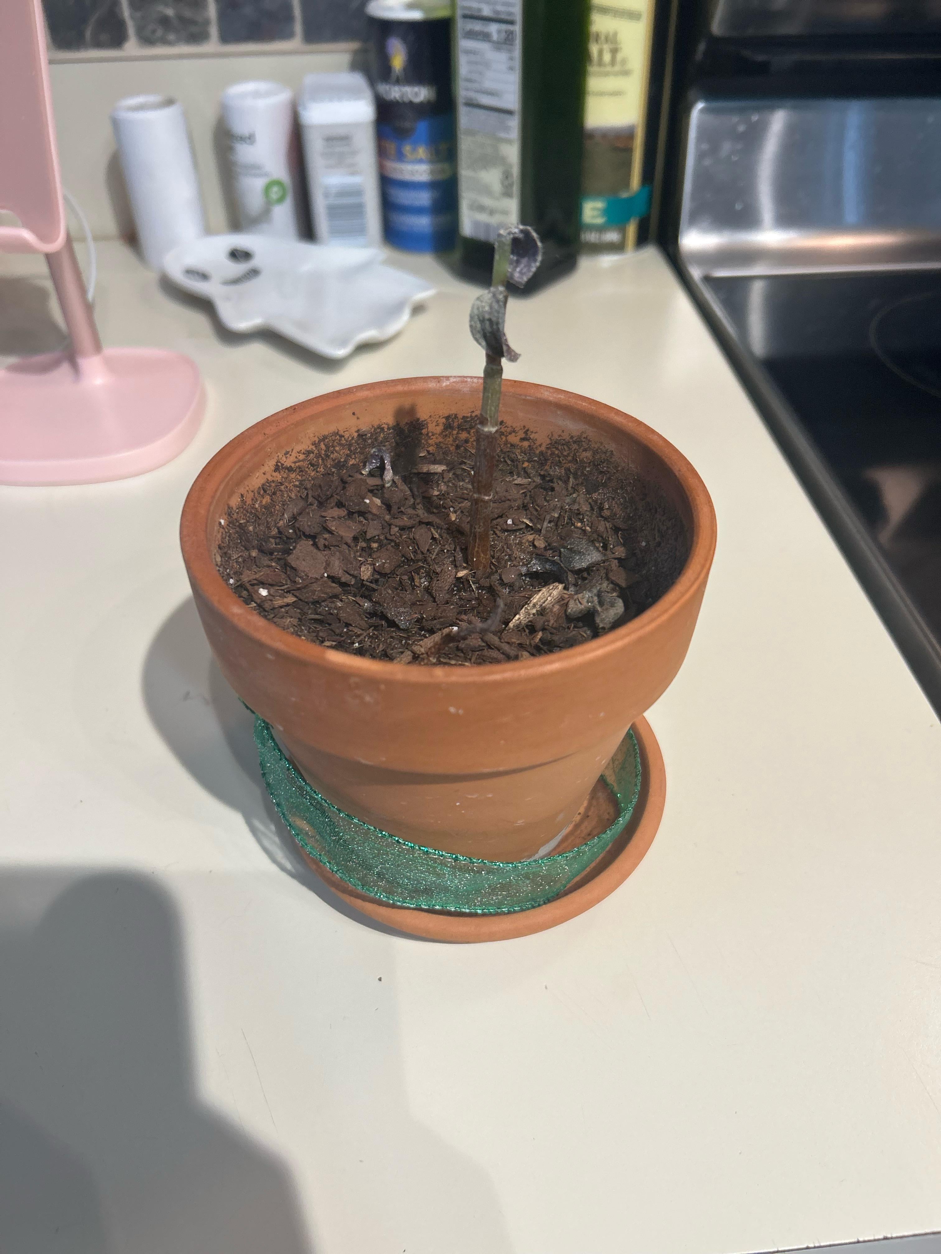 Ich habe diese Pflanze über anderthalb Jahre lang am Leben erhalten und nun scheint sie plötzlich zu sterben. Ich bin so gestresst und habe keine Ahnung, wie ich dagegen vorgehen kann! Es ist ein Ausschnitt aus der Pflanze ihrer Großmutter und es bedeutet ihr sehr viel, und ich möchte wirklich nicht derjenige sein, der es tötet!
