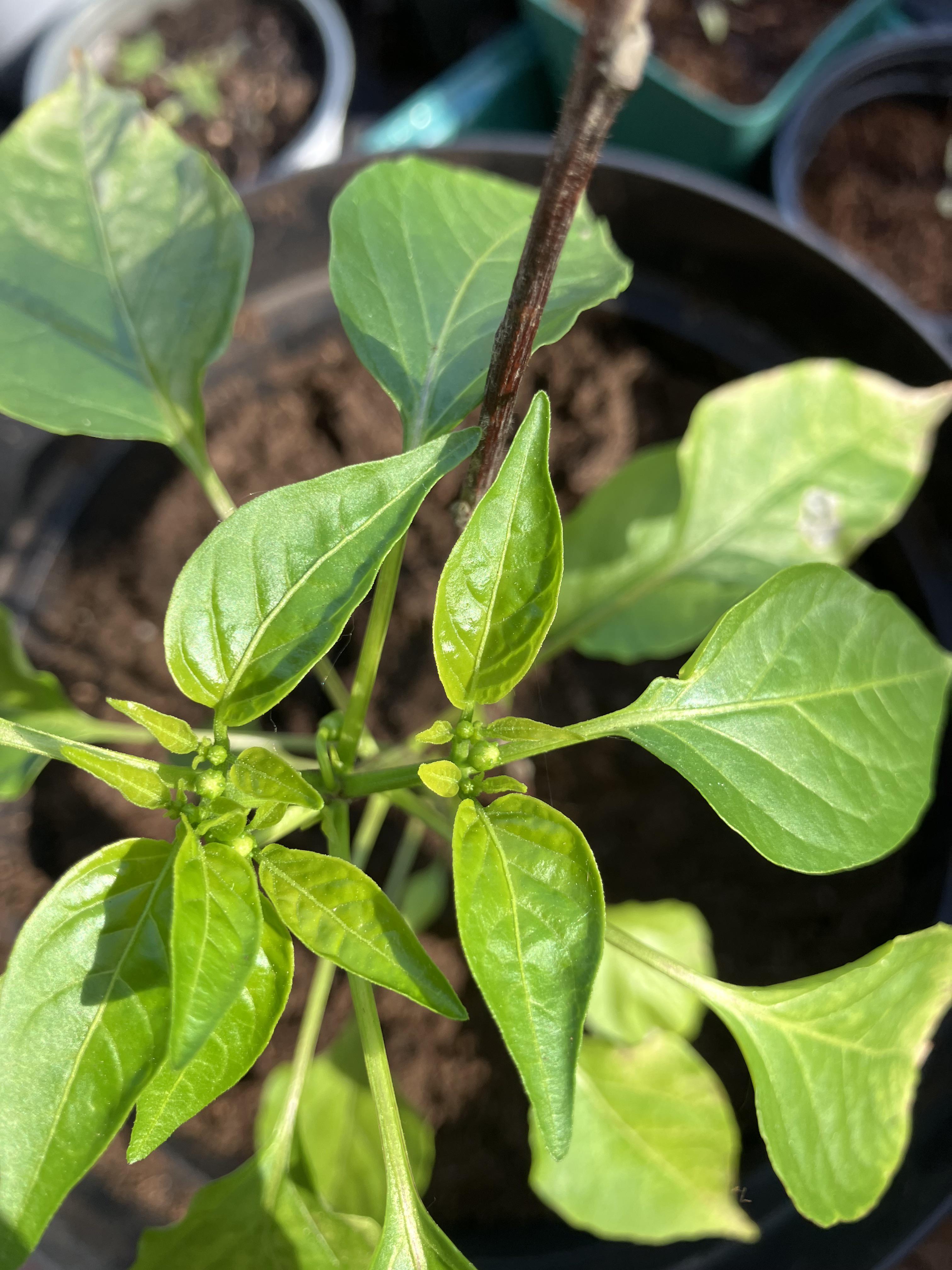 Meine Chili (vorgezogen seit Mitte Januar) steht jetzt tagsüber schön in der Sonne und schlägt sich sehr gut.