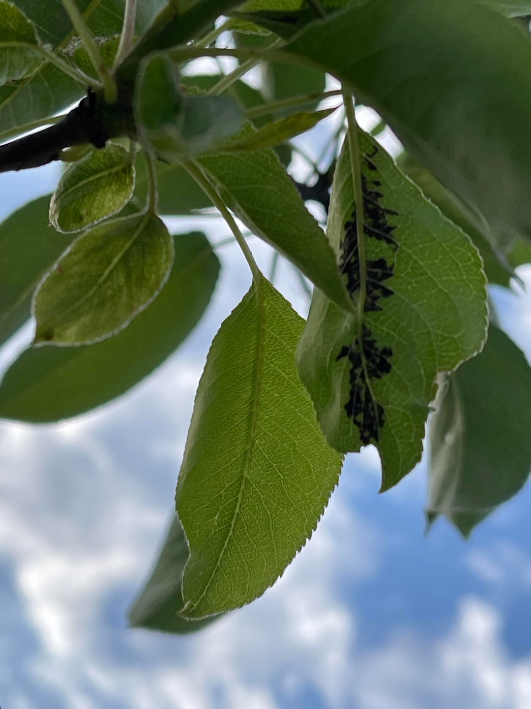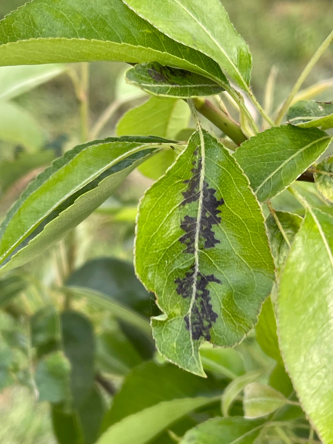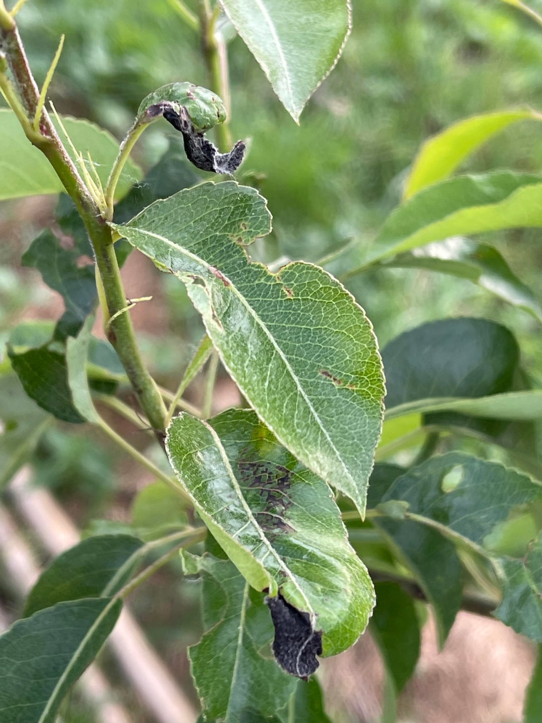 Hier ist ein Birnbaum, an dem ich diese schwarzen Flecken bemerkt habe, oft auch an den Blattspitzen, die zu trocknen scheinen. Meine jüngsten Untersuchungen deuten auf Schorf hin. Was denken Sie und was ist zu tun?