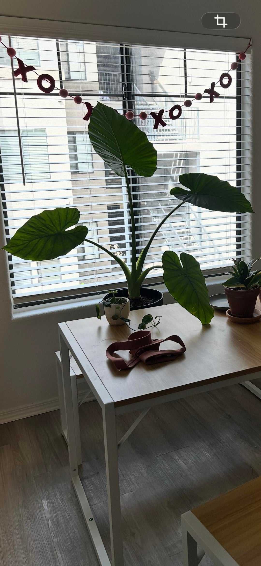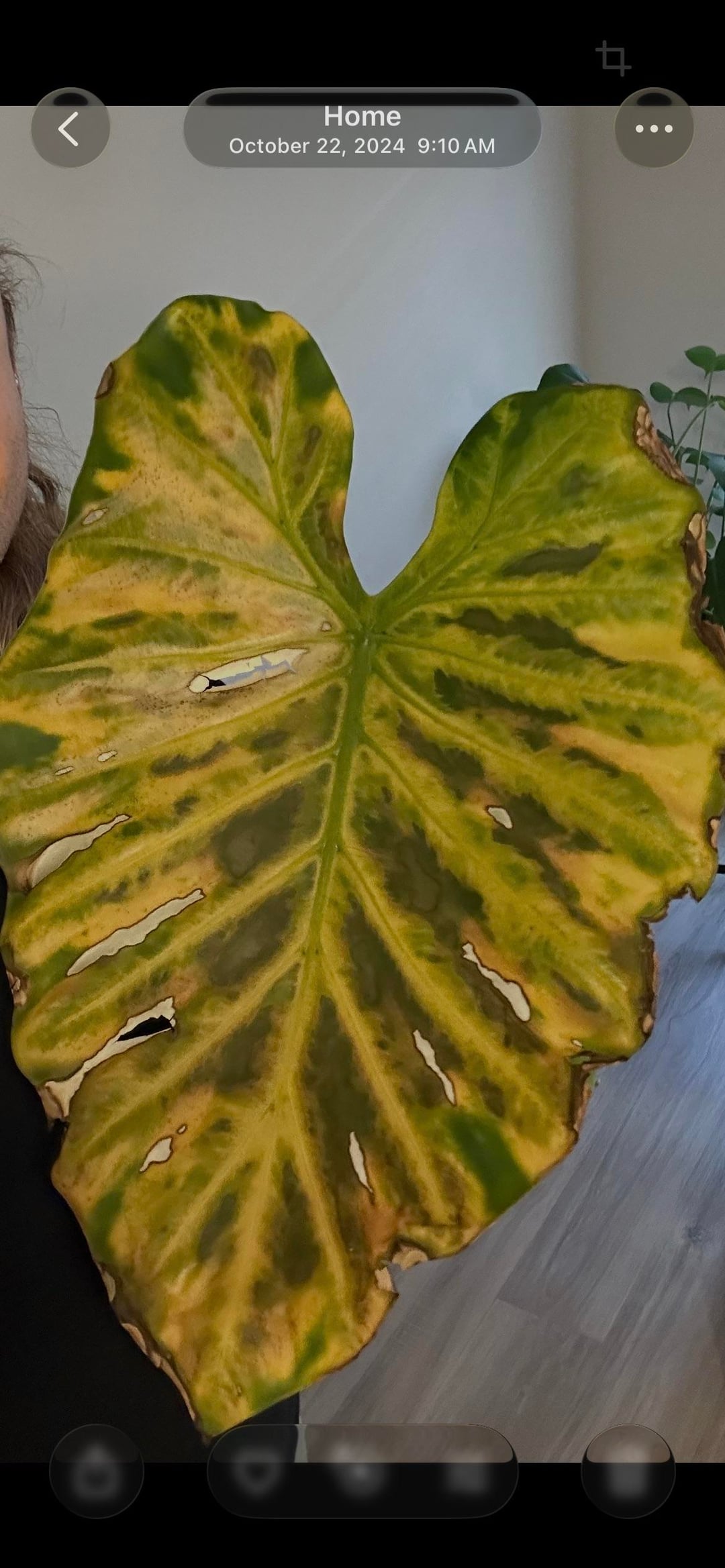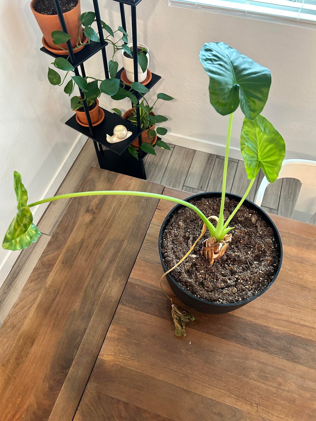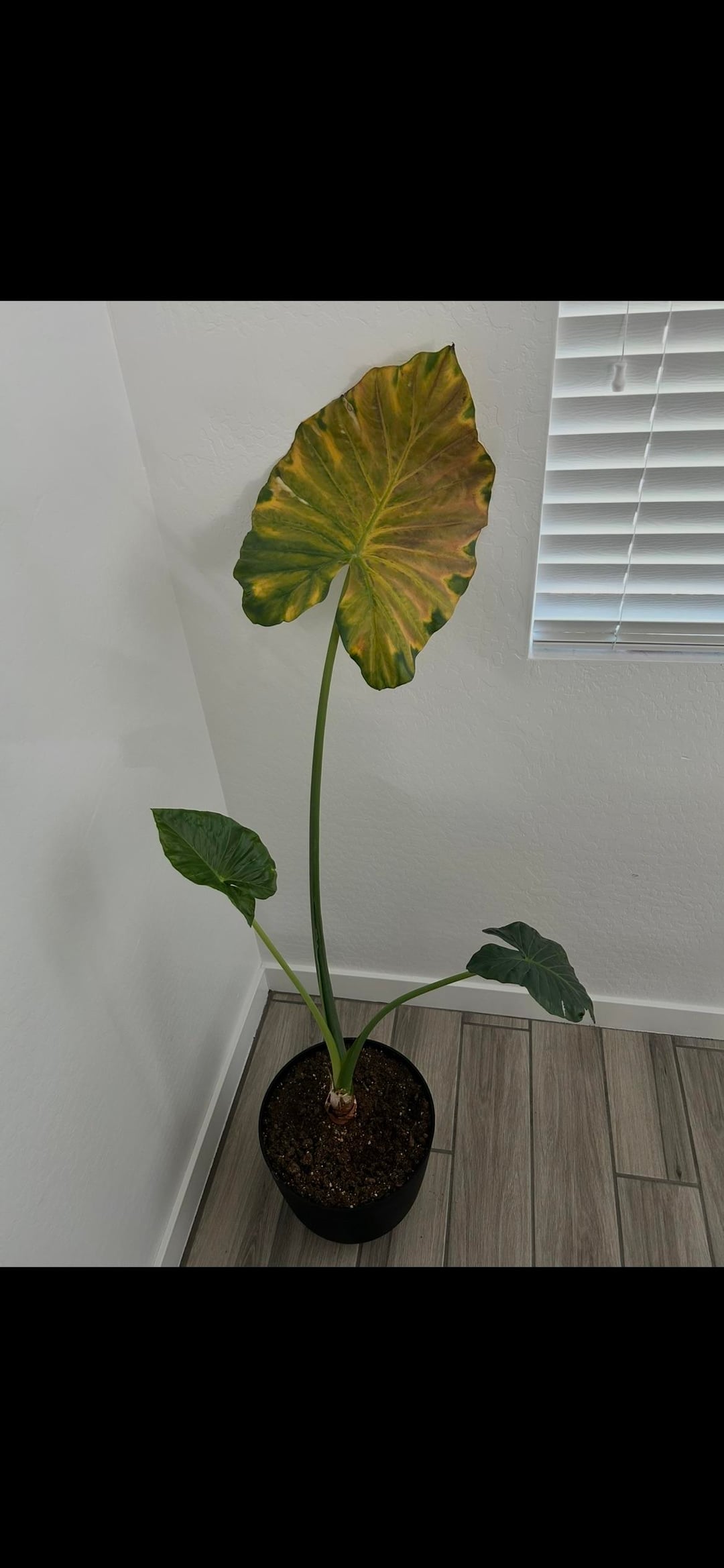Wir haben dieses Elefantenohr nun seit ca. 3 Jahren. Zuerst wurde es groß und schön. Aber vor etwa anderthalb Jahren passierte etwas. Ich bin mir nicht sicher, was. Ich glaube, es war ein Zimmerwechsel? Vielleicht andere Bedingungen, zu direkte Klimaanlage oder zu wenig Licht?